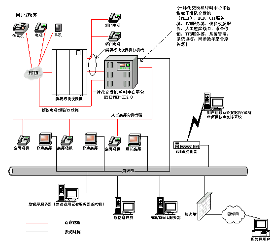 基于博宇科技一體化交換機(jī)呼叫中心平臺產(chǎn)品BYIPPBX-CC2.0的長安鈴木公司客戶服務(wù)中心系統(tǒng)網(wǎng)絡(luò)結(jié)構(gòu)