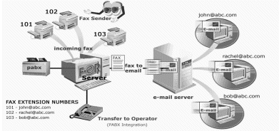 每一個 e-mail地址都可以對應一個獨立的傳真分機號碼,當有傳真呼入時,自動地將傳真發(fā)送給指定的接收者