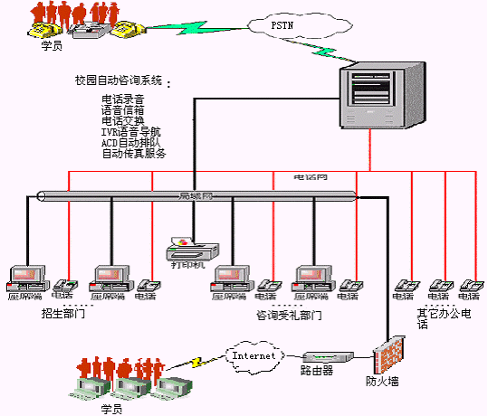 學員利用電話方式,可方便快捷的查詢教育培訓機構的介紹、開設課程情況介紹、教學地點情況介紹等信息。系統(tǒng)還可預置相關介紹內(nèi)容的傳真件,供學員按需自助索取。