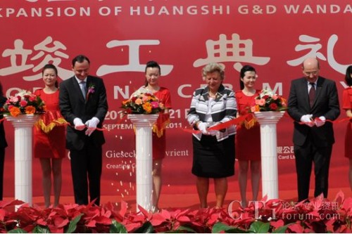 2011年9月21日, 湖北黃石。 黃石捷德萬達金卡有限公司在湖北黃石的工廠舉辦竣工典禮,慶祝公司第四期廠房擴建項目順利竣工并投入使用。