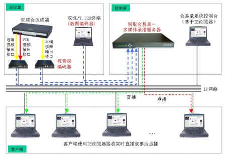 同時(shí)系統(tǒng)具備直播、點(diǎn)播功能,用戶使用IE瀏覽器即可接收會(huì)議的實(shí)時(shí)直播或進(jìn)行事后點(diǎn)播,通過直播或點(diǎn)播可同步觀看到會(huì)議中視音頻和數(shù)據(jù)內(nèi)容,觀看會(huì)議的效果如同身處會(huì)場(chǎng)之后。會(huì)易錄極大地?cái)U(kuò)展了視頻系統(tǒng)的功能和應(yīng)用,適合任何已有或擬建視頻會(huì)議系統(tǒng)的用戶使用。
