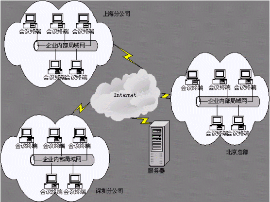 3、 靈活性,如某一員工出差,只要他的隨身PC能上網(wǎng)就能與主會場連接實(shí)現(xiàn)互動會議。