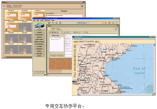 傳統(tǒng)的視頻會(huì)議廠(chǎng)商和其他WEB會(huì)議廠(chǎng)商都致力于開(kāi)發(fā)新的網(wǎng)絡(luò)交互協(xié)作產(chǎn)品,如POLYCOM公司的WEB OFFICE,美國(guó)EZENIA公司的InfoWorkSpace和美國(guó)WebEx公司的Meeting Center都屬于此類(lèi)產(chǎn)品。這類(lèi)產(chǎn)品可以單獨(dú)使用,也可以和視頻會(huì)議系統(tǒng)結(jié)合,為用戶(hù)提供虛擬的協(xié)作辦公環(huán)境。系統(tǒng)功能強(qiáng)大,一般提供語(yǔ)音/文字交談,即時(shí)信息,公告牌,文本處理,白板,屏幕共享,文件庫(kù)管理,投票等功能,并具有完善的數(shù)據(jù)加密和身份識(shí)別能力,完全滿(mǎn)足一般部門(mén)和企業(yè)網(wǎng)上協(xié)作辦公、培訓(xùn)的需要。