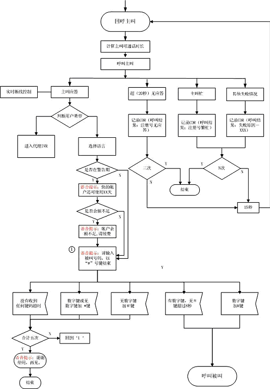 當(dāng)客戶的余額不足一分鐘時(shí),系統(tǒng)報(bào)提示音和催掛音并自動(dòng)釋放電話鏈路。 |