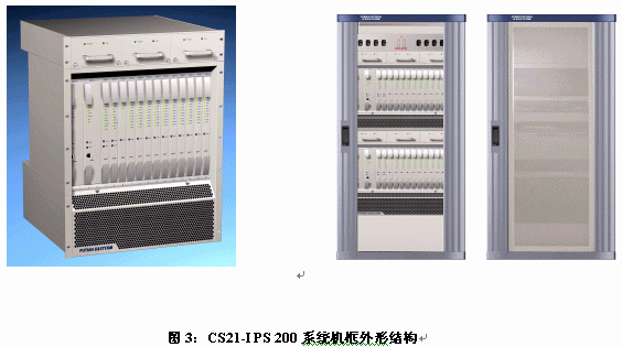 CS21-IPS 100結構更緊湊,按照19英寸機柜標準設計,支持七號信令處理和基本的交換功能。硬件系統(tǒng)由單個機框組成,有較高的性價比,作為移動交換機的警用接口和七號信令監(jiān)控系統(tǒng)有較廣泛的應用,也可以做為中小容量的綜合可編程交換平臺應用。