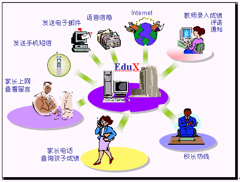 EduX提供電話、手機短信、EMAIL、WEB等跨媒體信息交互方式,使得家長和教師以任何他們習(xí)慣的方式進行信息聯(lián)絡(luò)。
