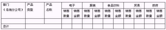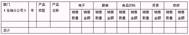 作為分公司銷售經(jīng)理,需要查看分公司每個(gè)銷售員的銷量統(tǒng)計(jì),便于向銷售總監(jiān)做好匯報(bào),需要同時(shí)知道不同產(chǎn)品類型的銷量。可以通過分組報(bào)表來(lái)實(shí)現(xiàn),如下圖: