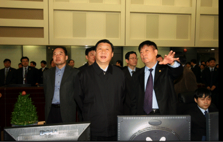 2007年2月16日,浙江省委書記習(xí)近平與省委常委、秘書長李強,副省長王永明、鐘山,省政府副秘書長王小玲、樓小東等人來到新建成的浙江省電力調(diào)度通信中心調(diào)度大廳進行視察,并通過杭州小靈通通信設(shè)備制造有限公司提供的電話調(diào)度系統(tǒng),向省、市、縣三級電力系統(tǒng)的廣大干部職工傳達了謝意并傳送新年的祝福。
