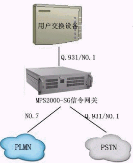 用戶原有的交換設(shè)備不做任何改動(dòng),只將原有的中繼通過原有信令(Q.931/NO.1)與信令網(wǎng)關(guān)對(duì)接,再通過信令網(wǎng)關(guān)分別以不同的信令與PSTN和PLMN對(duì)接。