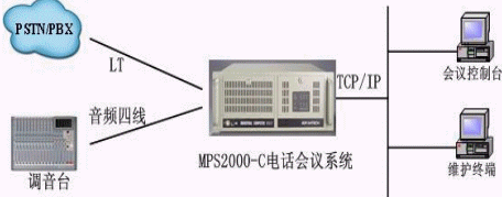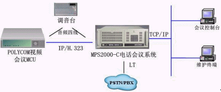 MPS2000音頻橋可以通過IP與視頻會議MCU相連,或者通過音頻四線與調(diào)音臺相連,從而使兩個系統(tǒng)實(shí)現(xiàn)語音互連。