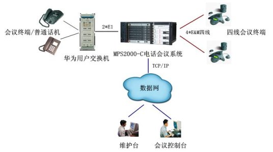在接入上,通過2個數(shù)字中繼與華為大型用戶交換機互連,實現(xiàn)華為用戶交換機下的模擬用戶作為與會用戶的接入,也可通過華為交換機出局,實現(xiàn)PSTN網(wǎng)內(nèi)的用戶接入。