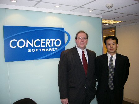 2004年10月3日-8日,Concerto全球總裁James Foy先生走訪(fǎng)亞洲,馬不停蹄地在6天的時(shí)間里訪(fǎng)問(wèn)了包括中國(guó)上海在內(nèi)的5個(gè)城市,向當(dāng)?shù)乜蛻?hù)、合作伙伴、媒體、專(zhuān)業(yè)機(jī)構(gòu)以及Concerto員工闡述合并后公司的目標(biāo)、戰(zhàn)略、產(chǎn)品以及服務(wù)體系,并聽(tīng)取他們的意見(jiàn)。2004年10月8日,CTI論壇在上海Concerto中國(guó)總部對(duì)這位IT界的傳奇人物進(jìn)行了專(zhuān)訪(fǎng)。