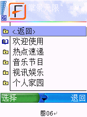 在確認(rèn)你的手機(jī)可以支持富年科技的專用移動(dòng)流媒體播放軟件后,你就可以到掌景無限的網(wǎng)站上下載對(duì)應(yīng)的播放軟件。這款播放軟件的名稱是FondoPlayer,其版本號(hào)和界面設(shè)計(jì)因所支持的手機(jī)品牌和型號(hào)的不同而略有區(qū)別,但是功能則大同小異。下面我們就以諾基亞的6600為例演示一下GPRS手機(jī)看電視的具體方法吧。