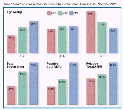 根據(jù)CSL的業(yè)績表明,香港也促進了早期MMS市場的成功發(fā)展。MMS用戶的ARPU值比GSM用戶高132%。