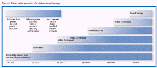 諾基亞計劃在2003年的第一季度,向市場投放一千萬到一千五百萬部帶視頻功能的智能手機,并準備公布22種不同功能的MMS方式。諾基亞也希望在2003年能售出大約一千萬部60系列的手機。諾基亞為所有終端平臺提供了3GPP公開標準,并在60系列的終端平臺上補充了Real-One