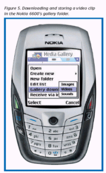MMS正在步入一個高級功能發(fā)展階段,其中包括信息表達能力、視頻和內(nèi)容的保護能力。諾基亞認為,由于用戶需要利用他們的個人移動終端去采集和發(fā)送視頻信息,因此用戶需要移動視頻服務(wù)。這種服務(wù)就是將用戶購買或免費獲贈的內(nèi)容發(fā)送的用戶的終端上。移動用戶也可以通過其它途徑來觀看視頻節(jié)目,包括通過瀏覽器進行視頻下載和流式播放。這兩種方式都有各自的優(yōu)點,例如,視頻下載允許用戶選擇、本地存儲或回放視頻節(jié)目,而流式播放則可以讓用戶實時播放尺寸較大的視頻節(jié)目。