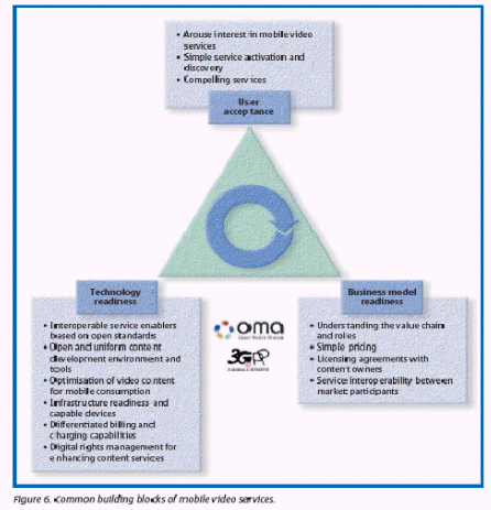 移動視頻服務(wù)會成為其它已制定的多媒體應(yīng)用程序的一個補充。例如,電視并未因網(wǎng)絡(luò)的出現(xiàn)而消逝,同樣的,其它數(shù)字化或傳統(tǒng)的移動傳輸應(yīng)用也不會因為移動視頻的出現(xiàn)而消失。主要概況中略述了移動視頻的好處。下面的文章則著眼于講述移動視頻服務(wù)的普遍發(fā)展障礙,基于大規(guī)模市場的三個關(guān)鍵標準分別是:技術(shù)預(yù)備程度、商業(yè)模式預(yù)備程度和用戶接受程度。主要的觀點將做更細致的介紹。