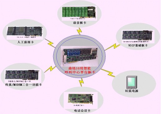 鼎銘公司將在本月隆重推出新一代的板卡級呼叫中心硬件平臺------DM016A/PCI多功能卡。DM016A/PCI系列語音卡是我公司十年來CTI技術(shù)的結(jié)晶,她涵括了目前市場中模擬語音處理卡、人工座席卡、傳真/MODEM卡、電話會議卡、高倍語音壓縮/解壓(VOIP)卡、高阻抗監(jiān)控錄音卡等功能和一體化的優(yōu)點,并自帶鈴流電源,不需另外接接線盒和鈴流電源。在該卡上能開發(fā)出PBX、ACD、IVR、FAX/MODEM服務(wù)器、Agnet(座席)子、預(yù)約呼出、錄音監(jiān)控、電話會議、VOIP(需第三方的H.323協(xié)議)網(wǎng)關(guān)等多媒體呼叫中心所需的所有功能模塊、子系統(tǒng)。