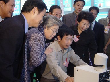C&E 2.2、嵌入式產(chǎn)品InterSound 3.0和Talking Book電子書(shū)等。語(yǔ)音合成給觀眾帶來(lái)了全新的感受,流暢自然的語(yǔ)音合成、抑揚(yáng)頓挫的唐詩(shī)誦讀吸引了無(wú)數(shù)參觀者駐足、觀賞。國(guó)務(wù)院副總理吳儀同志參觀安徽展區(qū)時(shí),親臨訊飛展區(qū),對(duì)訊飛的語(yǔ)音技術(shù)表現(xiàn)出強(qiáng)烈興趣?拼笥嶏w陳燕總監(jiān)向吳儀副總理簡(jiǎn)要匯報(bào)了中文語(yǔ)音產(chǎn)業(yè)及科大訊飛公司的發(fā)展情況,并親自演示了訊飛電信級(jí)和芯片級(jí)語(yǔ)音產(chǎn)品。吳儀臉上不時(shí)露出微笑,鼓勵(lì)訊飛再接再厲,把民族語(yǔ)音產(chǎn)業(yè)做大做強(qiáng)。