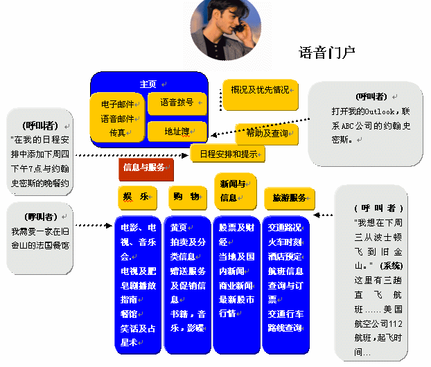 基于在語音識別技術(shù)準確度上已有突破性的進展,因此可以利用語音,不僅僅是改變原有的鍵盤輸入查詢方式,而且能夠使自動應(yīng)答系統(tǒng)處理更加復(fù)雜的情況。用戶撥打服務(wù)電話的時候,只需說出他/她的需求即可。如在電子黃頁業(yè)務(wù)中,用戶要查詢關(guān)于A公司的情況,服務(wù)電話接通以后就可以直接說出"A公司",而不要按鍵通過一層層的菜單目錄,然后系統(tǒng)就能自動播報出該單位介紹信息和聯(lián)系方式等。