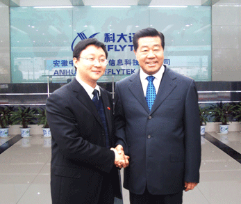 12月19日上午,中共中央政治局常委、全國政協(xié)主席賈慶林一行在安徽省委書記郭金龍、省長王金山等省市領(lǐng)導(dǎo)陪同下來到國家863計(jì)劃成果產(chǎn)業(yè)化基地——科大訊飛公司視察,賈慶林主席對科大訊飛在中文語音技術(shù)和產(chǎn)業(yè)化方面的成績給予充分肯定。上午8時30分,賈主席一行抵達(dá)訊飛語音產(chǎn)業(yè)大樓。中國科技大學(xué)黨委書記郭傳杰、科大訊飛總裁劉慶峰博士、基地總工陳濤及基地工作人員熱烈歡迎賈主席的到來。