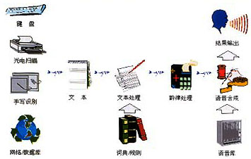 -----按照人類言語功能的不同層次,語言合成也可分成三個(gè)層次,它們是:(1)從文字到語音的合成(Text-To-Speech);(2)從概念到語音的合成(Concept-To-Speech);(3)從意向到語音的合成(Intention-To-Speech)。這三個(gè)層次反映了人類大腦中形成說話內(nèi)容的不同過程,涉及人類大腦的高級神經(jīng)活動(dòng)。不難想象,即使是按規(guī)則的文字到語音合成(文語合成)也已經(jīng)是相當(dāng)困難的任務(wù)。為了合成出高質(zhì)量的語言,除了依賴于各種規(guī)則,包括語義學(xué)規(guī)則、詞匯規(guī)則、語音學(xué)規(guī)則外,還必須對文字的內(nèi)容有很好的理解,這將涉及自然語言理解的問題。從這一點(diǎn)講,文語轉(zhuǎn)換系統(tǒng)實(shí)際上也可看作一個(gè)人工智能系統(tǒng)。圖1顯示了一個(gè)完整的文語轉(zhuǎn)換系統(tǒng)示意圖。文語轉(zhuǎn)換過程是先將文字序列轉(zhuǎn)換成音韻序列,再由語音合成器生成語音波形。其中第一步涉及語言學(xué)處理,例如分詞、字音轉(zhuǎn)換等,以及一整套有效的韻律控制規(guī)則;第二步需要先進(jìn)的語音合成技術(shù),能按要求實(shí)時(shí)合成出高質(zhì)量的語音流。因此一般說來,文語合成系統(tǒng)都需要一套復(fù)雜的文字序列到音素序列的轉(zhuǎn)換程序,也就是說,文語轉(zhuǎn)換系統(tǒng)不僅要應(yīng)用數(shù)字信號(hào)處理技術(shù),而且必須有大量的語言學(xué)知識(shí)的支持。當(dāng)然其中語音合成終究還是最基本的部分,它相當(dāng)于“人工嘴巴”,任何語言合成系統(tǒng)包括文語轉(zhuǎn)換系統(tǒng),都離不開語音合成器。