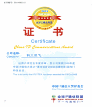 CTI論壇(ctiforum)10月12日消息: 近日,備受關(guān)注的CIPCA2009中國(guó)IP通信大獎(jiǎng)評(píng)選活動(dòng)近日落下帷幕,科大訊飛繼2008年之后,再次捧獲2009年中國(guó)最佳語(yǔ)音識(shí)別合成提供商獎(jiǎng)項(xiàng)。CIPCA中國(guó)IP通信大獎(jiǎng)是國(guó)內(nèi)下一代網(wǎng)絡(luò)通信行業(yè)最專(zhuān)業(yè)、權(quán)威的獎(jiǎng)項(xiàng),由全球IP通信聯(lián)盟發(fā)起,力主公正、公開(kāi)、公平。全球IP通信聯(lián)盟是中國(guó)最大的下一代網(wǎng)絡(luò)/通信行業(yè)門(mén)戶(hù)媒體及行業(yè)聯(lián)盟,縱跨固網(wǎng)和移動(dòng),涵蓋UC統(tǒng)一通信、IP語(yǔ)音、視頻、呼叫中心、即時(shí)通信、無(wú)線(xiàn)通信、IPTV等下一代通信各領(lǐng)域以及相關(guān)的安全、測(cè)試、芯片等行業(yè)。中國(guó)IP通信大獎(jiǎng)通過(guò)網(wǎng)絡(luò)評(píng)比與專(zhuān)家測(cè)評(píng)相結(jié)合的形式選拔產(chǎn)生,旨在肯定業(yè)內(nèi)優(yōu)秀企業(yè)為行業(yè)發(fā)展所作的努力與貢獻(xiàn),推動(dòng)市場(chǎng)的良性發(fā)展,同時(shí)為行業(yè)用戶(hù)提供一個(gè)權(quán)威的參考平臺(tái)。