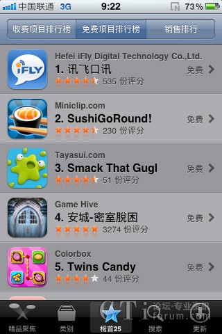 CTI論壇(ctiforum)5月24日消息(記者 張潔):科大訊飛推出的移動互聯(lián)網(wǎng)時代語音創(chuàng)新應(yīng)用——訊飛口訊,自5月18日登陸App Store為用戶提供免費下載應(yīng)用以來,迅即得到了國內(nèi)外蘋果手機(jī)用戶的高度關(guān)注和熱烈支持,短短兩天時間之內(nèi)即在App Store免費項目排行榜登頂,并已持續(xù)多日占據(jù)榜首位置。排行榜位置是由用戶下載量、實際應(yīng)用頻率和用戶評價等各項指標(biāo)綜合評定形成的,充分顯示了廣大“果粉”對于“訊飛口訊”這一創(chuàng)新性應(yīng)用的喜愛與高度認(rèn)可。