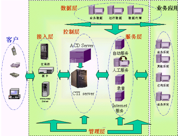 根據(jù)建設呼叫中心的不同需求,提供基于板卡、交換機通用呼叫中心,以及Internet呼叫中心三種方案。