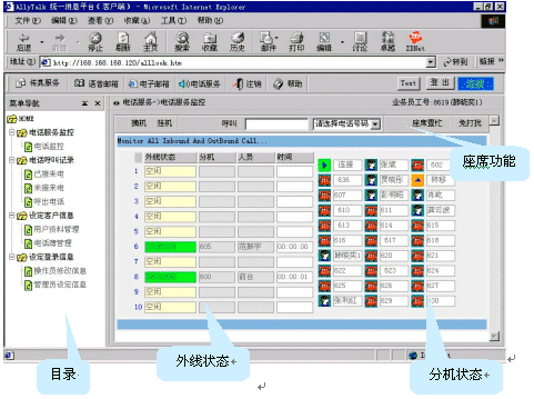 坐席輸入正確的工號、密碼后,登錄AllyTalk統(tǒng)一消息平臺,電話服務(wù)具有如下功能: