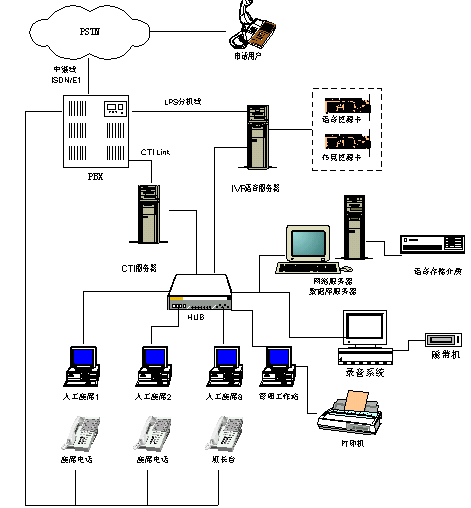 CTI服務(wù)器是一臺(tái)與交換機(jī)相聯(lián)的計(jì)算機(jī)(建議采用工控機(jī)),它通過接收來自交換機(jī)的事件/狀態(tài)消息和向交換機(jī)發(fā)送命令,實(shí)現(xiàn)計(jì)算機(jī)對電話、呼叫、分組、引導(dǎo)和中繼線全面控制,