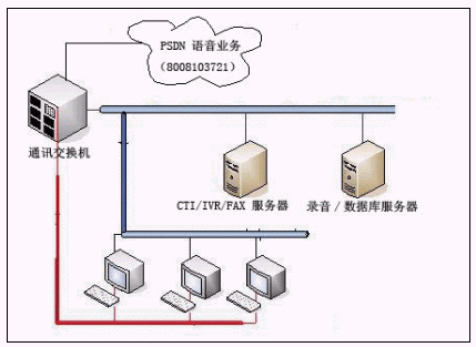 Logging)等幾個部分,中繼線接入采用30B+D、2B+D并存方式,數(shù)量達(dá)到30多條,IVR為8路,,座席數(shù)量為16個。