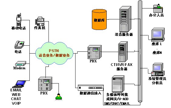 - 采用國內外高性能程控交換機,具有標準CTI接口。