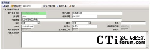 當(dāng)有電話來(lái)電時(shí),系統(tǒng)顯示來(lái)電號(hào)碼及來(lái)電人員的客戶資料信息;