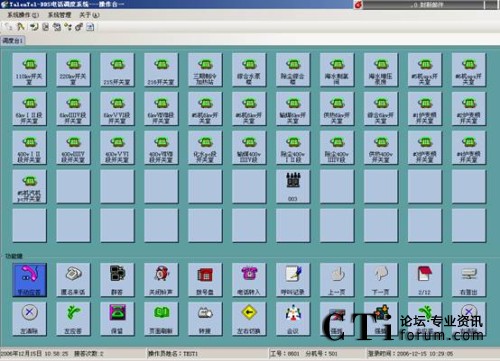 調(diào)度員通過觸摸屏(或者鍵盤鼠標(biāo))控制操作調(diào)度系統(tǒng),操作臺(tái)可以使用12個(gè)功能頁(yè)頁(yè)面。每個(gè)頁(yè)面共有22個(gè)功能按鍵和55個(gè)調(diào)度業(yè)務(wù)按鍵,55個(gè)調(diào)度業(yè)務(wù)按鍵可以根據(jù)具體調(diào)度業(yè)務(wù)需要靈活地編輯設(shè)置成直通呼叫鍵或組呼鍵。