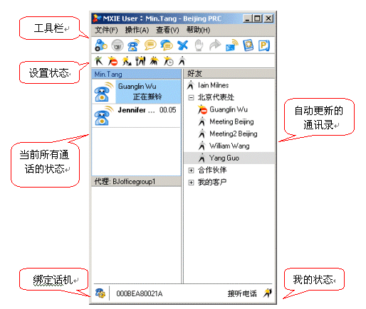MXIE是一個用戶端UCI(Unified communications Interface,統(tǒng)一通信界面)軟件。通過它可以實時設置或查看工作狀態(tài);使用自動更新的通訊錄,無需撥號進行呼叫;發(fā)送即時消息(IM:Instant Message,軟件和電話互發(fā));發(fā)送/收聽語音郵件;群發(fā)/群收傳真;設置個性化的來電處理規(guī)則等。