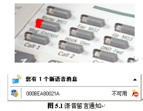 當(dāng)有新消息到達(dá)時(shí),話機(jī)上的“Msg”燈會(huì)閃亮,MXIE軟件也會(huì)有相應(yīng)提示。