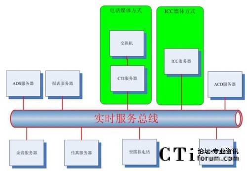 從上圖可以看出,通過實時服務總線,電話媒體方式和ICC媒體方式與其他服務的調用關系保持一致即可: