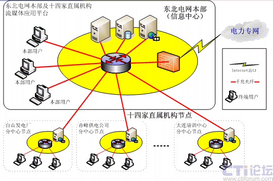 針對東北電網(wǎng)有限公司的需求,系統(tǒng)采用分布式網(wǎng)絡結(jié)構(gòu),并在14個直屬分支機構(gòu)部署CDN分節(jié)點,中心機房架設一臺WEB服務器,1臺數(shù)據(jù)庫服務器,1臺流媒體服務器作為CDN中心服務器,1臺直播發(fā)布服務器、2臺直播采集工作站,14個分支機構(gòu)分別架設1臺流媒體服務器作為CDN邊緣服務器,具體配置如下: