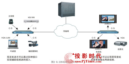 科達(dá)H.239雙視頻流具有非常靈活的輔助視頻輸入和輸出特性。其中,輸入支持VGA、復(fù)合端子、S端子、以太網(wǎng)等多種接口,PC桌面講稿等內(nèi)容可通過VGA輸入發(fā)言會(huì)場(chǎng)終端,不方便直接接入的PC桌面可借助LAN通過以太網(wǎng)輸入發(fā)言會(huì)場(chǎng)終端,資料碟片(VCD/DVD)、實(shí)物外觀(輔助攝像機(jī))可通過復(fù)合端子、S端子輸入發(fā)言會(huì)場(chǎng)終端。雙流輸出支持雙屏雙顯和雙屏單顯,雙屏雙顯時(shí),主視頻和輔助視頻通過兩臺(tái)顯示設(shè)備分別輸出,雙屏單顯時(shí),主視頻和輔助視頻以畫中畫或一左一右形式通過單臺(tái)顯示設(shè)備輸出。