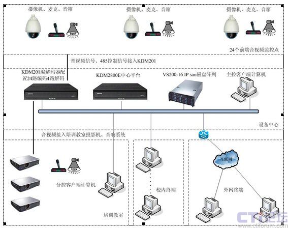 中國醫(yī)科大學(xué)附屬醫(yī)院該項(xiàng)目負(fù)責(zé)人員表示,選擇科達(dá),正是看中了科達(dá)ViewShot網(wǎng)絡(luò)視頻監(jiān)控系統(tǒng)強(qiáng)大的集成能力,能夠與其醫(yī)療系統(tǒng)友好兼容,滿足該系統(tǒng)的功能需求。年前該系統(tǒng)一期工程已經(jīng)完工。一期工程建設(shè)主要是應(yīng)用在其模擬手術(shù)實(shí)驗(yàn)室示教,模擬實(shí)驗(yàn)室的設(shè)備配置和場景設(shè)計(jì)完全參照真實(shí)手術(shù)室,科達(dá)監(jiān)控系統(tǒng)已實(shí)現(xiàn)對(duì)醫(yī)用高清攝像機(jī)、無影燈等醫(yī)用設(shè)備的對(duì)接,實(shí)現(xiàn)了教學(xué)實(shí)驗(yàn)室的手術(shù)示教和遠(yuǎn)程交流。二期擴(kuò)容近期內(nèi)將啟動(dòng),屆時(shí)監(jiān)控系統(tǒng)將全面接入真實(shí)手術(shù)室,真正實(shí)現(xiàn)手術(shù)現(xiàn)場直播示教和遠(yuǎn)程醫(yī)療交流與協(xié)助。