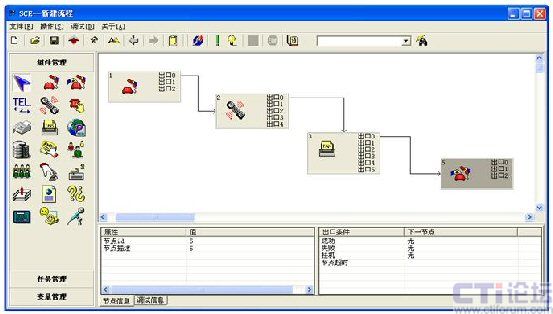 簽入、簽出、置閑、置忙、應(yīng)答、掛機(jī)、保持/取回、咨詢/取消咨詢、兩路切換、轉(zhuǎn)接、三方會(huì)議、轉(zhuǎn)技能組、外呼等;豐富的業(yè)務(wù)系統(tǒng)功能包括:工單管理、知識(shí)庫(kù)、客戶管理、質(zhì)檢管理、外撥管理、業(yè)務(wù)統(tǒng)計(jì)報(bào)表、公告板、郵件管理、系統(tǒng)管理、前臺(tái)業(yè)務(wù)(坐席)功能、班長(zhǎng)功能、數(shù)據(jù)同步、全程錄音、業(yè)務(wù)處理等,這些功能不作詳細(xì)介紹。IVR流程也是采用非常先進(jìn)的圖形化流程編輯器,通過(guò)簡(jiǎn)單的拖、拉圖標(biāo)方式即可實(shí)現(xiàn)對(duì)IVR流程的定制: