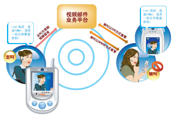 - 個性化設(shè)置:業(yè)務(wù)用戶可以定制視頻問候語,當(dāng)主叫用戶接入視頻郵箱服務(wù)器時,首先看到被叫用戶設(shè)置的視頻問候,然后才進(jìn)入視頻導(dǎo)航畫面。