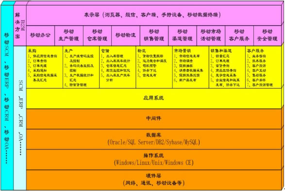 隨著移動商務時代的到來,電子商務時代的企業(yè)信息化系統(tǒng)(或者企業(yè)管理系統(tǒng)),包括SCM(供應鏈管理)、ERP(企業(yè)資源規(guī)劃)、CRM(客戶關系管理)、OA(辦公自動化)和財務系統(tǒng)等等將逐漸向Mobile-SCM(移動供應鏈管理)、Mobile-ERP(移動企業(yè)資源規(guī)劃)、Mobile-CRM(移動客戶關系管理)、Mobile-OA(移動辦公)等演變,并隨著應用的逐漸普及,給企業(yè)的生產(chǎn)經(jīng)營流程帶來巨大而深刻的變化。
