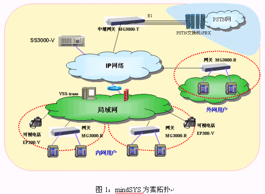 mindSYS方案通過(guò)數(shù)字中繼或者模擬中繼與電信運(yùn)營(yíng)商的程控交換機(jī)連接,無(wú)縫的接入PSTN網(wǎng)絡(luò),使得VOIP與傳統(tǒng)的電話、手機(jī)隨時(shí)互通,網(wǎng)內(nèi)網(wǎng)外同樣打電話,溝通世界的每一個(gè)角落。