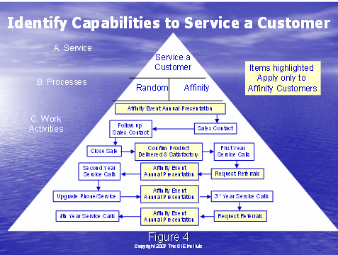 圖4中的全部圖片推翻了所需的服務(wù)客戶的行動(dòng)。這兩種方法提供了不同的過(guò)程以達(dá)到這個(gè)結(jié)果。在這個(gè)部分的底部,C. 工作行動(dòng),這些方格體現(xiàn)了頂端開始的行動(dòng),和經(jīng)歷之前描述的獲得和保持客戶的過(guò)程。