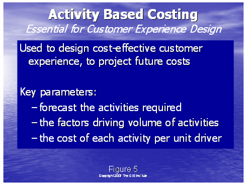 通過(guò)了解圖8,我們將以行動(dòng)成本管理大體是什么的總括作為結(jié)束。我們從左邊的成本驅(qū)動(dòng)因素開始——這是做工作的原因,例如:獲得客戶,維持客戶。就如圖4中所說(shuō)的,這些成本驅(qū)動(dòng)因素可以細(xì)分到工作行動(dòng)上去?梢酝ㄟ^(guò)描述人,培訓(xùn),設(shè)備和技術(shù)資源來(lái)組成工作行動(dòng)。資源驅(qū)動(dòng)因素被用于分配這些企業(yè)成本到各個(gè)行動(dòng)上去。下一步就是系統(tǒng)地確定行動(dòng)驅(qū)動(dòng)因素,分配行動(dòng)成本到成本對(duì)象上去,這有利于決策的制定。例如,獲得一個(gè)客戶和維持一個(gè)客戶需要花費(fèi)多少的成本?