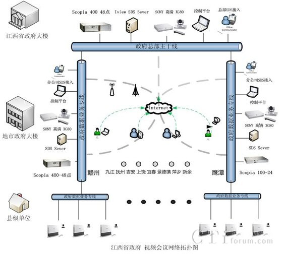 G50等相關(guān)設(shè)備。本套會(huì)議電視系統(tǒng)成功地實(shí)現(xiàn)了省、設(shè)區(qū)市、縣(區(qū))三級(jí)聯(lián)網(wǎng),此項(xiàng)目的部署,同時(shí)得到了RADVISION合作伙伴江西省電信公司的大力支持與協(xié)調(diào)。在項(xiàng)目簽約后3個(gè)月內(nèi)就完成了貨物調(diào)備、安裝、調(diào)試及測(cè)試、培訓(xùn)等一系列相關(guān)工作,受到了江西省政務(wù)信息網(wǎng)領(lǐng)導(dǎo)們的一致好評(píng)。