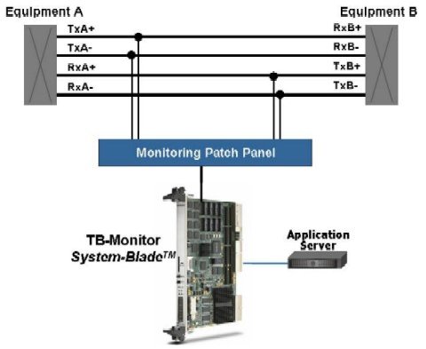 每個(gè)TB監(jiān)測(cè)系統(tǒng)刀片都配有64E1/T1的接收接口,可單向監(jiān)測(cè)多達(dá)64個(gè)E1/T1鏈路,或雙向監(jiān)測(cè)多達(dá)32個(gè)E1/T1鏈路。使用TelcoBridges的監(jiān)測(cè)接線面板,每條鏈路通過基于標(biāo)準(zhǔn)的高阻抗連接進(jìn)行探測(cè),實(shí)現(xiàn)非插入式網(wǎng)絡(luò)監(jiān)測(cè)。