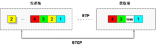 利用實時傳輸控制協(xié)議RTCP反饋信息提供丟包重發(fā)功能,當(dāng)接收端檢測到有丟包時,判定對端是否來得及進行重發(fā),可以的話通過RTCP控制信道向發(fā)送端請求重發(fā)。